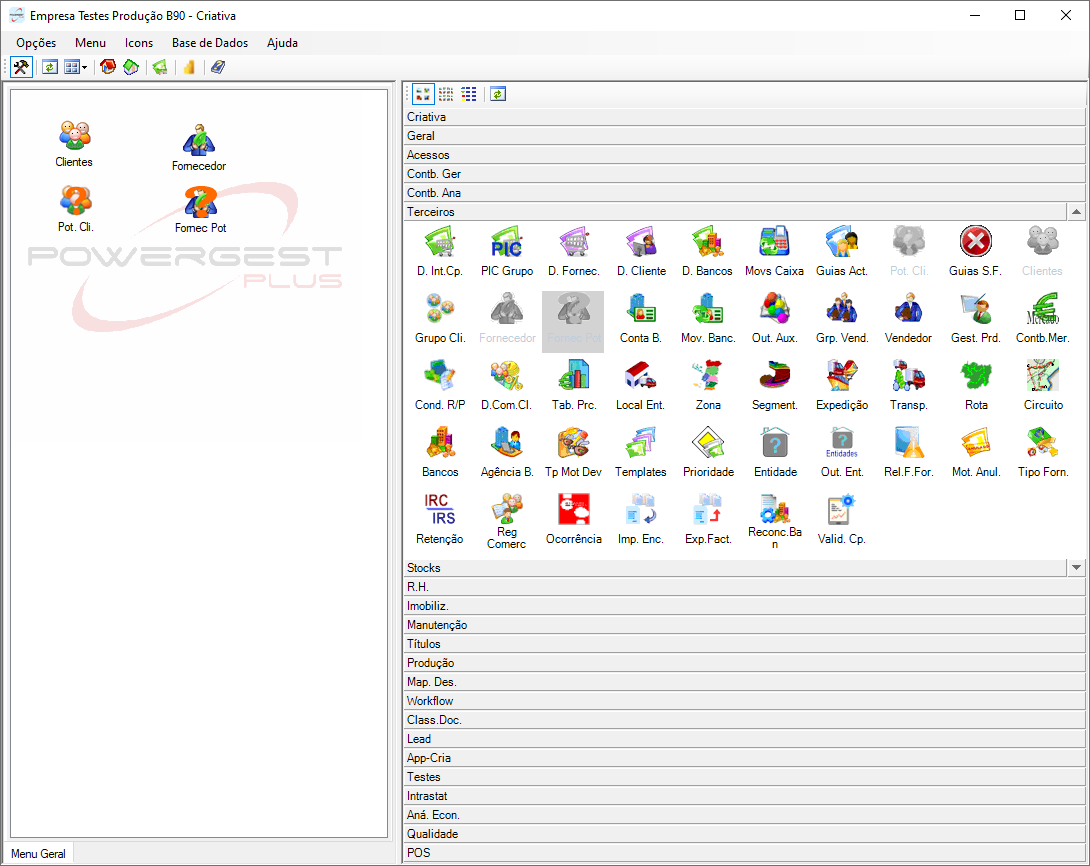 Gestão de clientes, fornecedores, clientes, comerciais, banca & stocks.